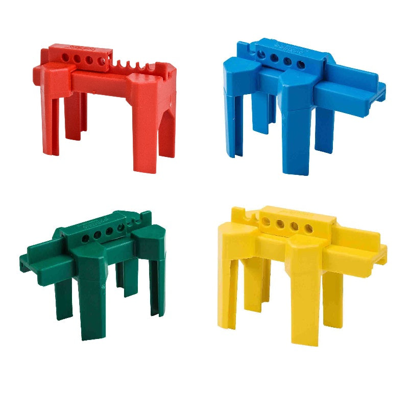 De twee helften van het apparaat omvatten de hendel van de kogelkraan om deze te beveiligen tegen onbedoelde activering van de klep.