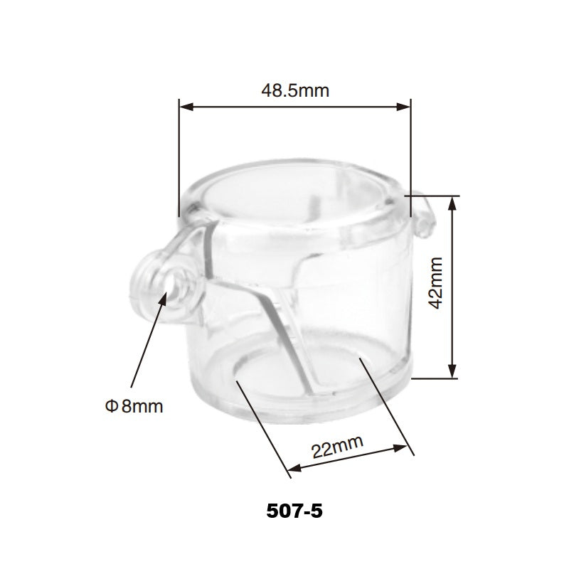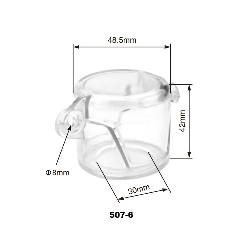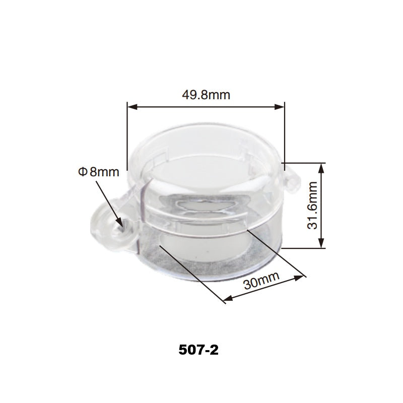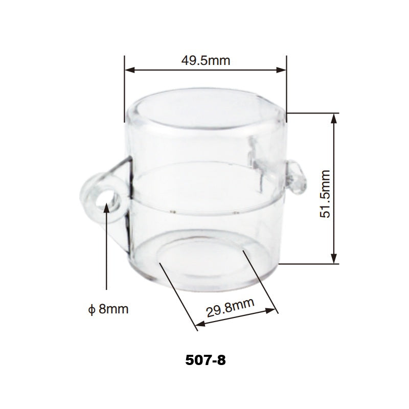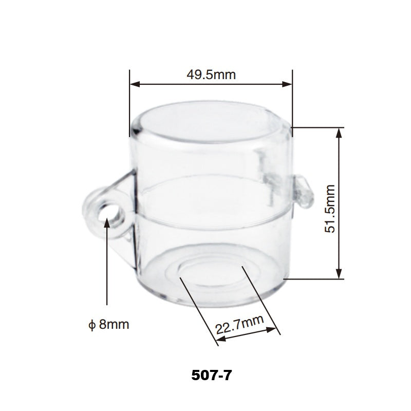 507-7 / 507-8: Made from durable transparent PC. Fits on press or screw emergency stop button. Easily used and permanently prevent workers from operating carelessly. Fits both 22.7 mm~29.8 mm diameter switches.